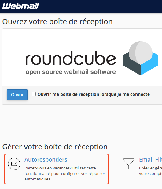 2. Dans la rubrique “Gérer votre boîte de réception”, cliquez sur “Autoresponders” :